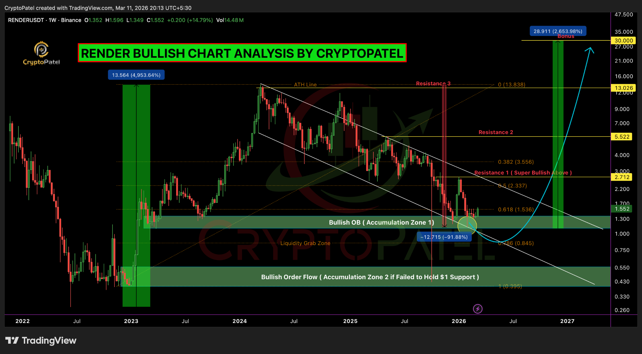 RENDER verzeichnete auch einen Anstieg des 24-Stunden-Handelsvolumens um 280%, was mit dem wachsenden Interesse zusammenfällt. Laut einer Vorhersage des Marktanalysten Crypto Patel bereitet sich Render auf einen Anstieg Richtung 28 USD vor.